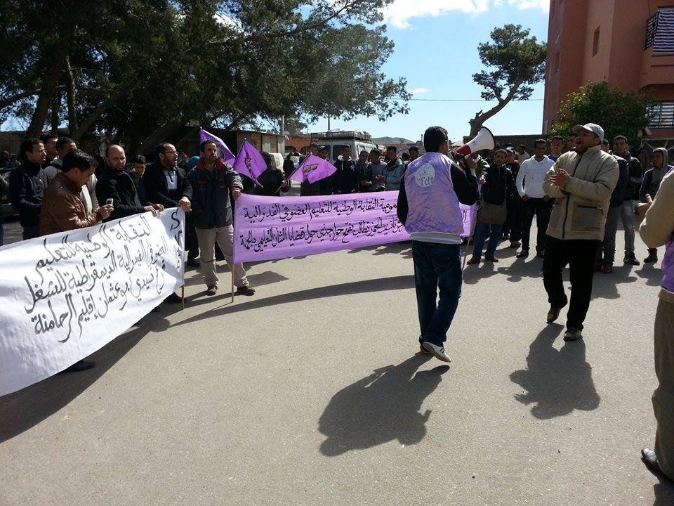 الرئيسية / اخبار تعليمية / وقفة احتجاجية نقابية بسيدي بوعثمان إقليم الرحامنة ضد تردي الأوضاع