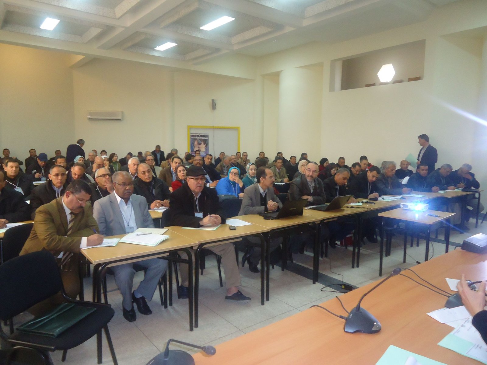 كما تدخل الأخ عبد الكريم جوالي وأعطى تقريرا ماليا كما أعطى الأخوان احميدة النحاس وخديجة بوجادي تقارير حول علاقات النقابة بالنقابات الحليفة والتعاون الدولي.