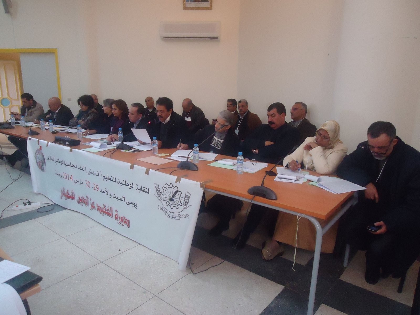 بدعوة من المكتب الوطني عقد المجلس الوطني دورته العادية في دورة الفقيد عزالين شافيقي الكاتب الجهوي للنقابة السابق بالجهة الشرقية وذلك يوم السبت 29مارس 2014 بمدينة وجدة والذي حضره اغلب اعضاء المجلس الوطني من مختلف المدن المغربية . وبعد قراءة الفاتحة ترحما على الأستاذتين كوثر السليماني وابتسام سميري بالابتدائي والاستاذين نورالدين القندوشي ومحمد الصنهاجي بالإعدادي والذين يعملون بنيابة تاونات وتعرضوا لحادثة سير مميتة . أعطى الأخ عبد العزيز إوي الكاتب العام للنقابة عرضا باسم المكتب الوطني وقف فيه على الاستعداد لتنظيم مسيرة وطنية بمدينة البيضاء يوم 6 أبريل احتجاجا على التجاهل الحكومي للنداءات المتكررة بفتح حوار جاد حول المطالب العمالية.