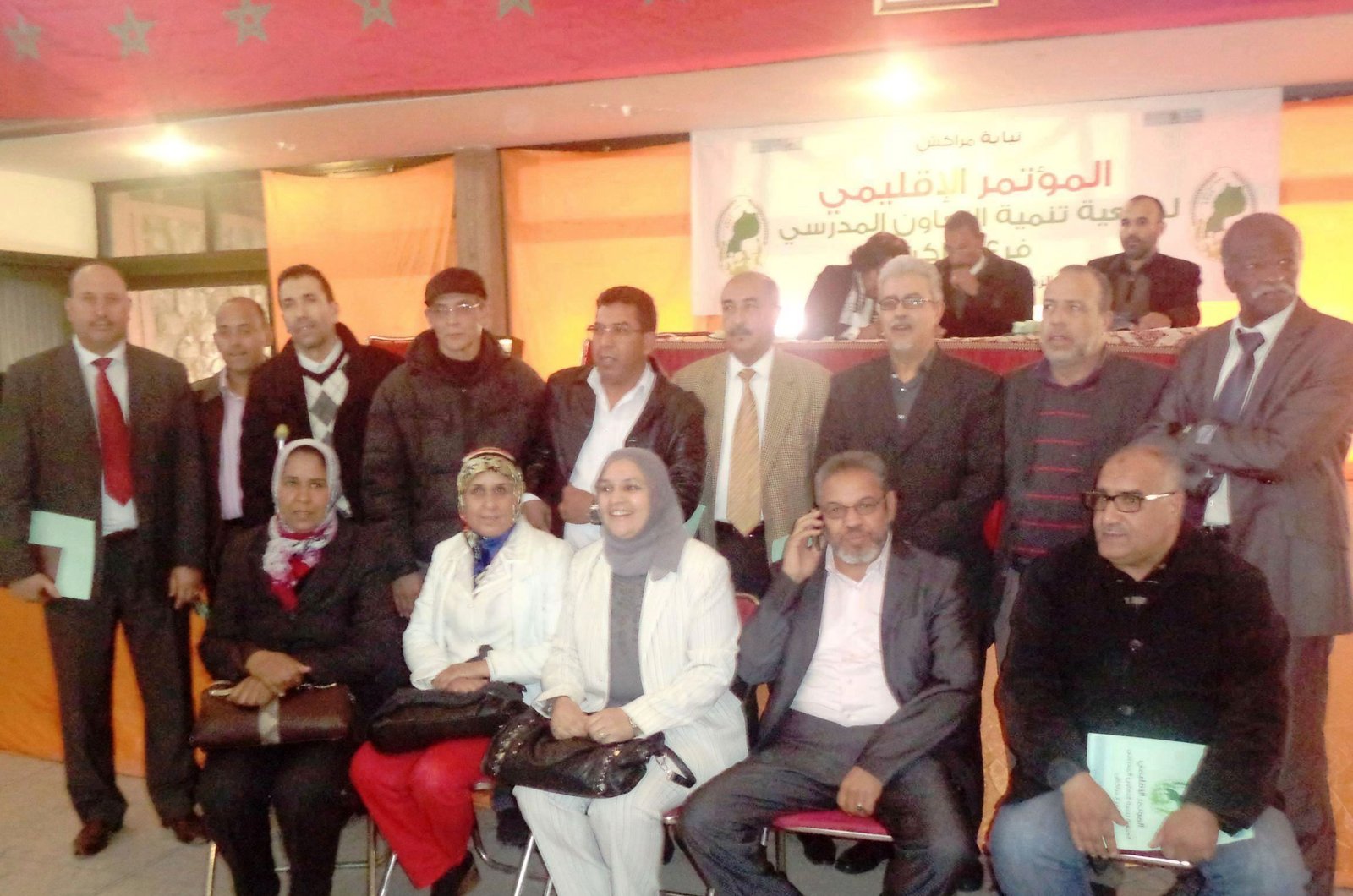 عقد مكتب فرع جمعية تنمية التعاون المدرسي بمراكش مؤتمره الإقليمي تحت إشراف ثلاثة أعضاء من المكتب الوطني لهذه الجمعية يوم الخميس 27 مارس 2014 بثانوية الزهراء للتعليم الأصيل بمقاطعة جليز بمراكش على إثر نشر مقال تحت عنوان : ʺ محاولات القضاء على عصب دعم تنمية قطاع التعاون المدرسي بمراكش ʺ على إحدى صفحات جريدة الاتحاد الاشتراكي عدد : 10.649 ليوم الأربعاء 12 مارس 2014 ، حيث تم انعقاد هذا المؤتمر خارج كل الضوابط القانونية في الوقت الذي لم يلتزم فيه أعضاء المكتب الإداري لفرع الجمعية بتطبيق ما ورد في الفصل الثامن عشر من النظام الأساسي فيما يتعلق بالشق الخاص بتكوين مكتب الفرع ، حيث نص هذا الفصل على أن مكتب الفرع يتكون : ʺ ما بين 6 و 14 عضوا ينتخبهم المؤتمر الإقليمي ، شريطة أن يكون العدد زوجيا ، ويشارك في أشغال المؤتمر الإقليمي الموظفون المكلفون بتدبير الحياة المدرسية بالتعليم الابتدائي بنيابة وزارة التربية الوطنية والموظفون الملحقون بالمكتب المشرف على هذا القطاع بنيابة الوزارة وكذا هيئة التفتيش ومديرو المدارس الابتدائية ومنسق واحد عن كل تعاونية مدرسية يتم انتخابه على صعيد المؤسسة ، ويشترط في هؤلاء أن يكونوا أعضاء عاملين في الجمعية مؤدون لواجب انخراطهم خمسة عشر يوما على الأقل قبل المؤتمر ʺ ، وهذا ما تم تجاوزه جملة وتفصيلا ، فقد لوحظ خلال هذا المؤتمر بعد انطلاق أشغاله على الساعة العاشرة والربع صباحا بأن جميع من حضروه بمن فيهم أعضاء المكتب الإداري لفرع الجمعية لا يتوفرون على بطاقة المنخرط في جمعية تنمية التعاون المدرسي ، الشيء الذي أشار إليه أحد أعضاء المكتب الوطني في بداية أشغال هذا المؤتمر مؤكدا على أن جل المؤتمرين الحاضرين الذين بلغ عددهم 144 لا يتوفرون على الصفة القانونية التي تخول لهم المناقشة والتصويت والترشيح في هذا المؤتمر ، مما أثار فوضى عارمة داخل القاعة مصحوبة بضجيج قوي تسبب في التشويش لمدة طويلة على التلاميذ الذين كانوا يدرسون في ذات الوقت بباقي حجرات الدراسة بثانوية الزهراء للتعليم الأصيل بمراكش ، وهكذا بعد تلقي الكاتب العام للفرع رئيس مكتب الأنشطة بنيابة مراكش مكالمة هاتفية ، هذا العضو الذي لم يتوقف هاتفه النقال عن تلقي عدة مكالمات هاتفية مسترسلة طيلة مدة عقد هذا المؤتمر بادر تنفيذا لتعليمات كان يتلقاها هاتفيا من جهة مجهولة من خارج القاعة على وجه السرعة إلى التعجيل بمحاولة إضفاء الشرعية على هذا المؤتمر متجاوزا بذلك ما ورد في النصوص القانونية المنظمة للجمعية ، حيث غادر قاعة المؤتمر لبضع دقائق ليعود وفي يده مئات البطاقات لجمعية تنمية التعاون المدرسي قام بتوزيعها بالمجان يمنة ويسرة دون أن يتسلم واجب الاشتراك في الجمعية المحدد قانونا في عشرين درهما ، بطاقات ساعده على الفور في عملية توزيعها أحد أعضاء المكتب القديم على جميع الحاضرين وهي على بياض لا تحمل أي معلومة خاصة بهوية من تسلمها ولا صورته الشخصية ولا حتى طابع مكتب فرع الجمعية بمراكش ، حيث أن هناك من الحاضرين من تسلم أكثر من بطاقة ، وقد سلمت خلال هذا التوزيع العشوائي بطاقات إلى صحافيين هم أيضا و مساعدين تقنيين وغيرهم وكل من حضر في ذات الوقت دون استثناء داخل قاعة المؤتمر ، ناهيك على أنه تم إقصاء هيئة التفتيش من حضور هذا المؤتمر بعدما لم يتم إخبارهم بزمان ومكان عقده ، ملاحظة أثارها أحد المتدخلين مشيرا على أن هذا العمل ممنهج القصد منه إقصاء رجال هذه الهيئة الذين يعتبرون من ضمن المكونات الأساسية لهذه الجمعية حسب المنصوص عليه قانونا.