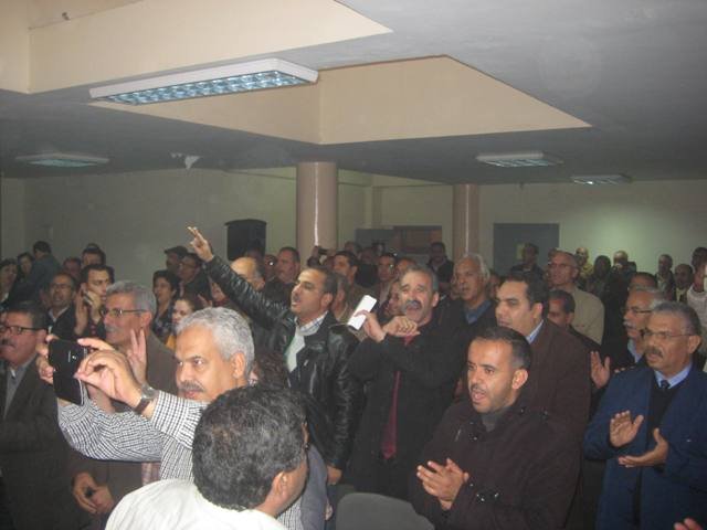 وبعد الاستماع لعرض المكتب الوطني الذي ألقاه الأخ عبد العزيز إيوي الكاتب العام و الذي تناول فيه بالدراسة و التحليل الاوضاع الاقتصادية و الاجتماعية ببلادنا و التي ما فتئت تزداد تدهورا و استفحالا في ظل نهج حكومي أساسه إغراق البلاد في الديون الخارجية والانصياع لإملاءات الدائنين و استمرار تدهور القدرة الشرائية للمواطنات و المواطنين جراء الزيادات المتتالية في الأسعار، وعدم فتح حوار حقيقي حول الملف المطلبي الاجتماعي و محاولة تجزيئه لتمرير ما سمي مشروع إصلاح التقاعد والتضييق على الحريات و الحقوق النقابية. و استعرض العرض تطورات الوضع التنظيمي في الفيدرالية الديموقراطية للشغل منذ مؤتمرها الوطني الرابع والذي خلق من جهة دينامية تنظيمية جديدة ابرزها محطات التأسيس والتجديد التي عرفتها الهياكل المحلية للمنظمة على امتداد ربوع الوطن كما مكن من جهة اخرى من استعادة المبادرة النضالية الكفاحية من خلال الإضراب الوطني الناجح ليوم 23 شتنبر 2014 بتنسيق مع الاتحاد العام للشغالين بالمغرب والذي كان وراء تحريك الساحة الاجتماعية وفتح آفاق النضال الاجتماعي بخوض اضراب 29 أكتوبر 2014 ضد الحكومة و سياستها اللاشعبية التي استهدفت القدرة الشرائية للمواطنين وانحازت للطبقات المحظوظة و غيبت الحوار الاجتماعي حول الملف المطلبي ,و تناول العرض جردا للمحاولات اليائسة والفاشلة لخلق ازدواجية تنظيمية في الفيدرالية الديموقراطية للشغل بتواطؤ مكشوف لرئيس الحكومة وقيادة إحدى المركزيات المتحاملة ، و منها المؤامرة الدنيئة التي دبرت يوم 9 نونبر 2014 بعقد ما يسمى مؤتمرا تنظيميا استثنائيا للنقابة الوطنية للتعليم في جنح الظلام وهو نفس يوم رحيل الفقيد أحمد الزايدي. ووقف العرض أيضا عند مستجدات الدخول المدرسي و تطورات الحوار القطاعي .