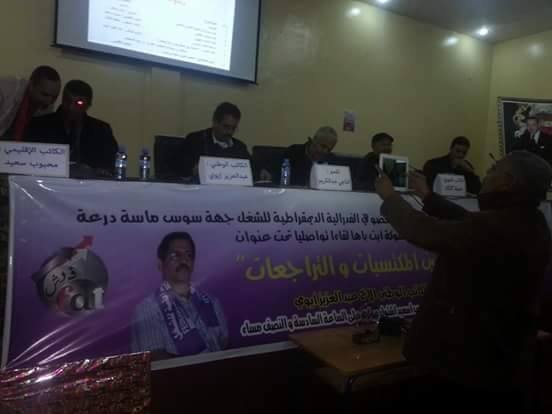 كلمة إيوي جاءت خلال لقاء تواصلي تحت إشراف المكتب الجهوي للنقابة الوطنية للتعليم “ف.د.ش” ، نظمه فرع اشتوكة آيت باها للنقابة الوطنية للتعليم، اختير له عنوان “التقاعد بين المكتسبات والتراجعات