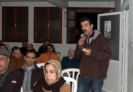 أطر الأخ عبد العزيز إوي ، الكاتب الوطني للنقابة الوطنية للتعليم ، العضو في الفيدرالية الديمقراطية للشغل ، لقاء تواصيا على هامس أشغال المجلس الإقليمي للنقابة الوطنية للتعليم العضو في الفيدرالية الديمقراطية للشغل ، مساء يوم الثلاثاء 13 يناير 2015 بمدينة أسفي .
