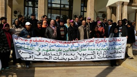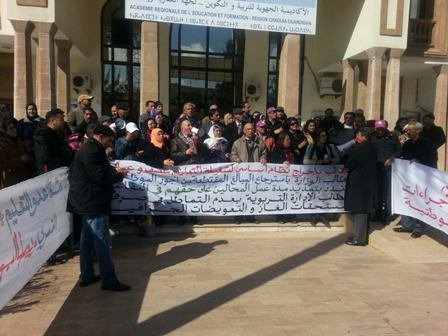 نظمت النقابة الوطنية للتعليم(ف د ش) بجهة الشاوية ورديغة وقفة احتجاجية أمام الأكاديمية الجهوية للتربية والتكوين بسطات وذلك يوم الخميس 12 فبراير 2015