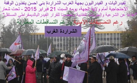 نظمت الفيدرالية الديمقراطية للشغل وقفات احتجاجية يوم السبت 21 فبراير 2015 أمام مقرات ولايات المملكة ابتداء من الساعة 11 صباحا تحت “شعار دفاعا عن الشرعية والحريات النقابية وتحصينا للقرار الفيدرالي المستقل” . وقد شارك في هذه الوقفات من أقصى الشمال إلى أقصى الجنوب مئات الأعضاء من الجالس الوطنية ومكاتب الفروع للنقابات القطاعية : التعليم ـ الفوسفاط ـ البريد ـ الصحة ـ اتصالات المغرب ـ الجماعات المحلية ـ العدل ـ المالية ـ التجهيز ـ الطاقة والمعادن …. اطر هذه الوقفات أعضاء المكتب المركزي . و تميزت بحضور حاشد لمسؤولي الفيدرالية الديمقراطية للشغل بجميع الجهات وردد خلالها المناضلات والمناضلون شعارات تندد بالوضع الاجتماعي المتدهور للطبقة العاملة والحوار المغشوش وانتهاك الحريات النقابية وتستنكر التدخل المفضوح لرئيس الحكومة إلى جانب الكاتب العام المخلوع ومن معه بعد أن لفظهم المؤتمر الوطني الرابع الذي مر يومي 19 و20 يوليوز 2014 في جو ديمقراطي شفاف ونزيه حضره أكثر من 850 من المسئولين الوطنيين لأغلب القطاعات الفيدرالية وانتخب مجلسا وطنيا جديدا انبثق عنه مكتبا مركزيا يتحمل فيه الأخ عبد الحميد الفاتحي مسؤولية الكاتب العام . ورغم الحصول على الوصل النهائي والحكم الذي قضت به المحكمة الابتدائية بالدار البيضاء يوم 31 دجنبر 2014 بنفي صفة الكاتب العام عن العزوزي وإقراره بقانونية المؤتمر الرابع وما انبثق عنه من أجهزة ، أبى السيد رئيس الحكومة إلا أن يقف ضد الشرعية التنظيمية والقانونية والميدانية للفيدرالية الديمقراطية للشغل باحتضانه لكمشة من المتنفعين لم تعد تمثل سوى نفسها كمحاولة يائسة منه لتسخيرها في تمرير قراراته المعادية للطبقة العاملة .