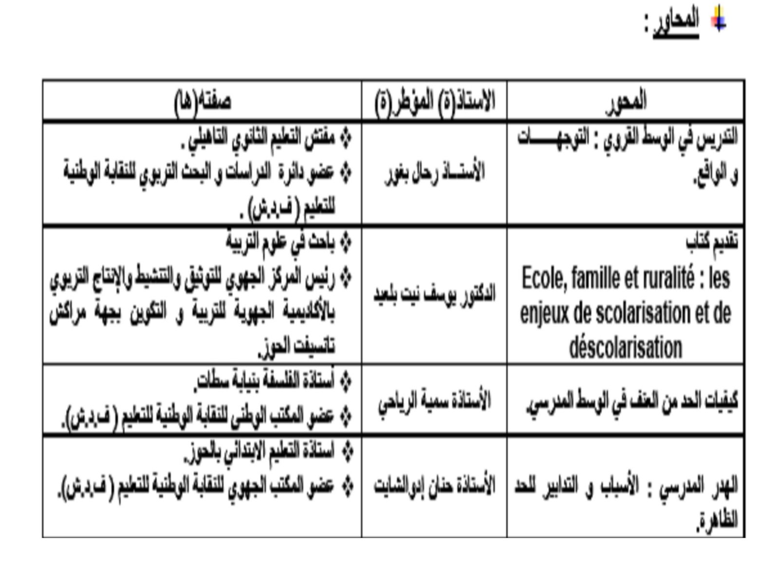 و من المنتظر أن تكون محاور الملتقى على الشكل التالي :