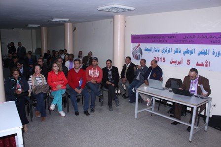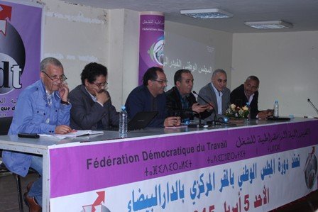 عقد المجلس الوطني للفيدرالية الديمقراطية للشغل اجتماع المجلس الوطني في دورة عادية يوم الأحد 5 أبريل 2015 في الذكرى 12 على تأسيس فدش..بعد المصادقة على جدول أعمال الدورة استمع المجلس الوطني إلى عرض المكتب المركزي والذي ألقاه الأخ عبد الحميد الفاتيحي الكاتب العام للنقابة والذي أكد فيه انه مند المؤتمر الوطني الرابع والفيدراليون يواصلون بشكل جماعي الاستمرار في النهج الذي سلكناه وهو إعادة بناء فدش وفق منظور جديد.. وأضاف أن الاجتماع اليوم أتى من جديد والسياقات السياسية والاقتصادية والاجتماعية والتي سبق توصيفها لازالت قائمة ولازالت تنتج أثارها السلبية على الدولة والمجتمع .