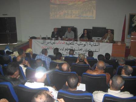 عقد المجلس الجهوي للنقابة الوطنية للتعليم العضو في الفيدرالية الديمقراطية للشغل بجهة مراكش ـ اسفي مجلسه الحهوي يوم السبت 18 ابريل 2015 بكلية العلوم السملالية بمراكش .. وهو المجلس الذي حضره ممثلي إقليم أسفي وإقليم اليوسفية بعد التقسيم الإداري الجديد إلى جانب باقي أقاليم الجهة