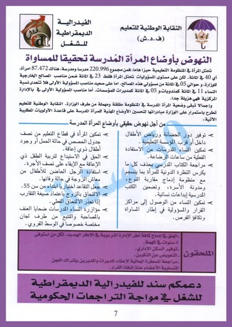 الرئيسية / اخبار نقابية / النهوض باوضاع المراة المدرسة تحقيقا للمساواة