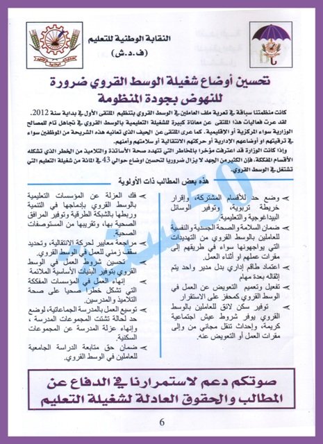 الرئيسية / اخبار نقابية / تحسين اوضاع شغيلة الوسط القروي ضرورة للنهوض بجودة المنظومة