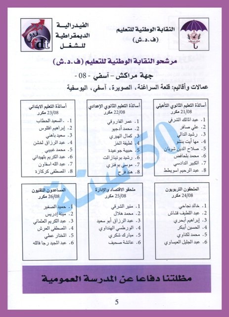 عمالات أقاليم : قلعة الراغنة ـ الصويرة ـ آسفي ـ اليوسفية