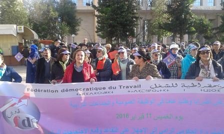 في إطار تفعيل قرار المجلس الوطني الاستثنائي للفيدرالية الديمقراطية للشغل بشن إضراب وطني عام في الوظيفة العمومية و الجماعات الترابية و المؤسسات العمومية يوم 11 فبراير 2016، و الذي سيكون مسبوقا بوقفات و مسيرات احتجاجية إقليمية بتأطير من المكتب المركزي ، نظم الاتحاد المحلي للفيدرالية الديمقراطية للشغل بمكناس تنظيم مسيرة احتجاجية إقليمية بمكناس يومه السبت 23 يناير 2016 ابتداء من الساعة الرابعة مساء من أمام محكمة الاستئناف بمكناس و ذلك من أجل :