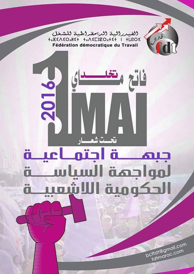 لذا اخترنا قياسية الاحتفال الاحتجاج بالعيد الأممي فاتح ماي لهذه السنة تحت شعار: ” جبهة اجتماعية لمواجهة السياسة الحكومية اللاشعبية ” لمواصلة التنسيق النقابي وتوسيع هذا التنسيق إلى كل المكونات الوطنية الاجتماعية والمدنية لمواجهة الآثار الوخيمة لسياسة الحكومة.