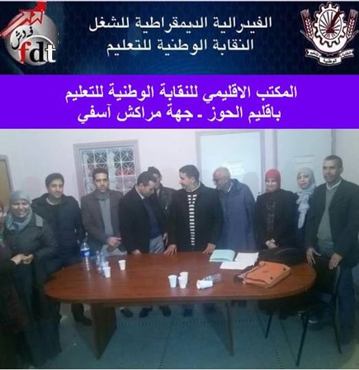 بدعوة من المكتب الإقليمي للنقابة الوطنية للتعليم العضو في الفدرالية الديمقراطية للشغل بإقليم الحوز، انعقد اجتماع المجلس الإقليمي للنقابة بالإقليم بمقر الاتحاد الاشتراكي للقوات الشعبية بالرميلة مساء يوم السبت 18 فبراير 2017، بحضور الأخ محمد آيت واكروش عضو المكتب الوطني والكاتب الجهوي للنقابة الوطنية للتعليم فدش بجهة مراكش أسفي، وأعضاء المجلس الوطني للنقابة الأخت والإخوة خديجة آيت الدرعي ومحمد بحري والسعيد العطشان.