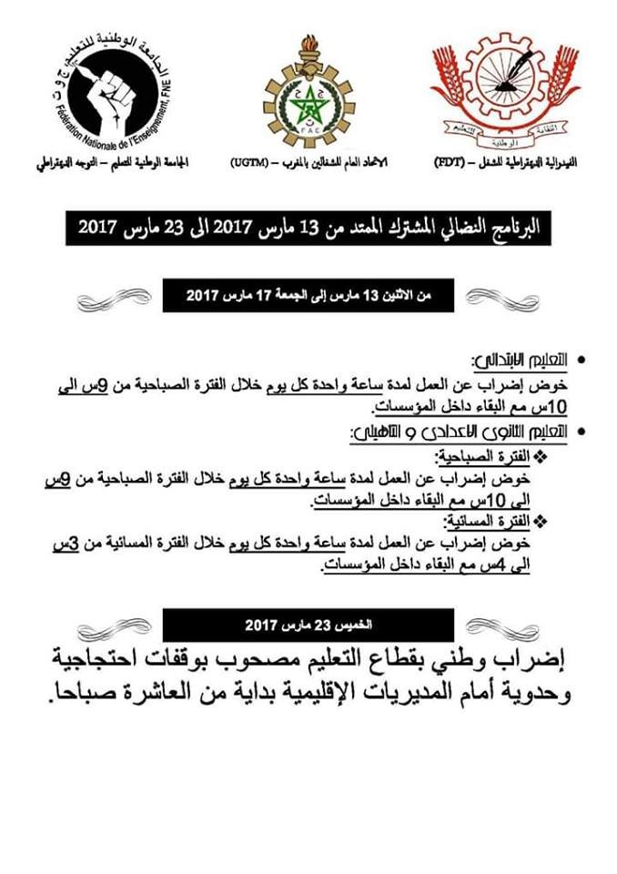 خوض اضراب عن العمل لمدة ساعة واحدة كل يوم خلال الفترة الصباحية من س 9 إلى س 10 مع البقاء داخل المؤسسات