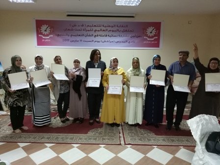 نظم المكتب الإقليمي للنقابة الوطنية للتعليم العضو في الفدرالية الديمقراطية للشغل بتنسيق مع المكتب الجهوي يومه السبت الحادي عشر من مارس 2017 بنادي المدرس حفلا بمناسبة اليوم العالمي للمرأة و الذي تخلده المنظمة هذه السنة تحت شعار” من أجل مشاركة نسائية فاعلة في الشأن التعليمي و النقابي”. و قد حضر الحفل مجموعة من الفعاليات النقابية من عضوات و أعضاء المجلس الوطني و المكتب الجهوي و المكاتب الإقليمية و المحلية و مجموعة من الضيوف كبعض أعضاء النقابة الديمقراطية للجماعات المحلية العضو في الفدرالية الديمقراطية للشغل. و بالمناسبة ألقى الأخ محمد ايت واكروش عضو المكتب الوطني و الكاتب الجهوي للنقابة الوطنية للتعليم كلمة بالمناسبة أكد فيها على الدور الفعال و الحضور المتميز للمرأة في جميع الأجهزة النقابية الوطنية و الجهوية و الإقليمية و المحلية و ألقت الأخت سعيدة البرجي كلمة باسم دائرة المرأة في الإقليم ثمنت فيها التواجد النسائي الفاعل و المتميز للمرأة الفيدرالية في جميع المحطات النضالية التي خاضتها النقابة كما أكدت على أهمية شعار النقابة هذه السنة و على ضرورة العمل على تفعيله على أرض الواقع .