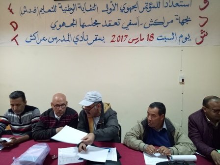 على بعد أقل من شهر من المؤتمر الجهوي الجهوي الأول للنقابة الوطنية للتعليم (فدش) بجهة مراكش ـ آسفي المقرر عقده يومي 14 و15 أبريل 2017 عقدت اللجنة التحضيرية للمؤتمر اجتماعها الرابع  يوم السبت 18 مارس 2017 بنادي المدرس قرب ثانوية الزهراء بمراكش  للتداول في جدول أعمال يتضمن عرض تقارير اللجنة التحضيرية ومناقشتها والمصادقة عليها .