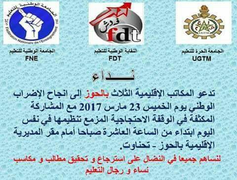 ثلاث نقابات توجه نداء للشغيلة التعليمية باقليم الحوز داعية اياها الى انجاح الاضراب الوطني ليوم الخميس 23 مارس 2017 snemas 2017-03-21 اخبار نقابية اضف تعليق Spread the love شاركها Facebook Twitter Google +