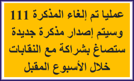 حسب مصدر من المكتب الوطني للقابة الوطنية للتعليم (فدش) حضر الاجتماع الذي عقدته الوزارة الوصية اليوم الجمعة 26 ماي 2017 مع النقابات التعليمية الاكثر تمثيلية حول الحركة الانتقالية فانه تم الغاء المذكرة 111 التي كانت تنظم العلاقة بين النقابات التعليمية الاكثر تمثيلية والمديريات الاقليمية والاكاديميات