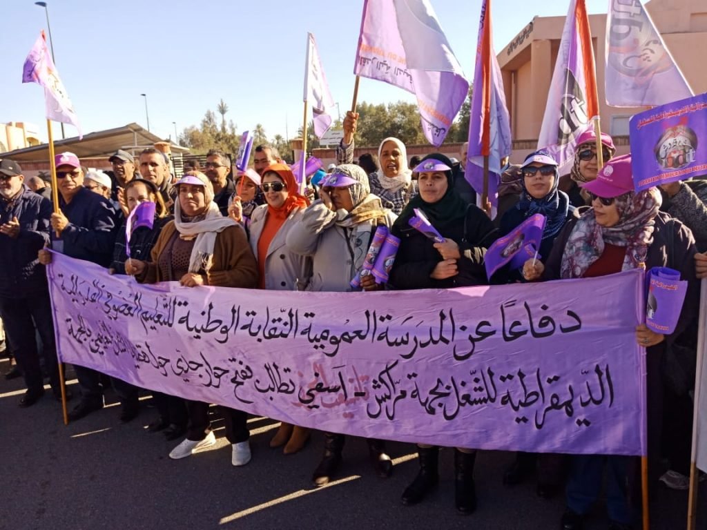 وناشدت االشغيلة التعليمية بالحفاظ على وحدة الصف النقابي للدفاع عن حقوقها ومطالبها العادلة والمشروعة .