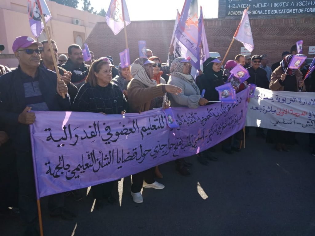خاضت الشغيلة التعليمية بجهة مراكش ـ آسفي اضرابا وطنيا دعت اليه النقابات التعليمية الست الاكثر تمثيلية ودعمته كل التنسيقيات التي تنشط بالقطاع وتوجته بوقفة أمام الاكاديمية الجهوية .. وعلم من مصادر في النقابة الوطنية للتعليم (فدش) أن نسبة المشاركة على مستوى المديرية الاقليمية بمراكش فاقت 70% في الجماعات القروية التابعة للإقليم ، بينما تجاوزت 80% في المجال الحضري هذا الصباح .