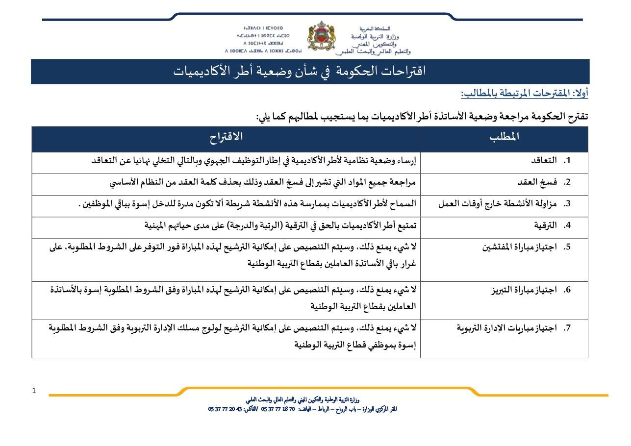 المقترحات التي تدمت بها الحكومة ورفضتها الناقابات :