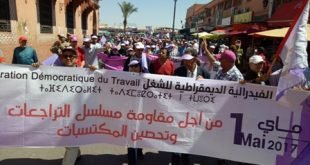 أختي العاملة تخلد الفـيدرالية الديمقراطية للشغل فاتـح ماي2017 العيد ألأممي للطبقة العامــلة تحـت شعـار: “مــــن أجــــل مقاومة مسلسل التراجعات وتحصين المكتسبات” إيمانا منها بضرورة تحصين مكتسبات الشغيلة المغربية والدفاع عن حقوقها، عبر ملفاتها المطلبية وكشف المراوغات التي تطال العمل النقابي للنيل منه، في استهداف سافر لانتهاك الحقوق والحريات النقابية والمس بحق …