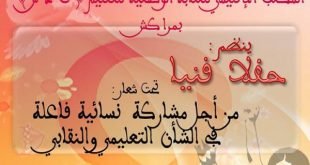 في إطار الاحتفاء باليوم العالمي للمرأة تنظم دائرة المرأة بمراكش بتنسيق بين المكتب الإقليمي و المكتب الجهوي للنقابة الوطنية للتعليم بجهة مراكش ـ اسفي ، حفلا فنيا تحت شعار : [ ِمن اجل مشاركة نسائية فاعلة في الشأن التعليمي والنقابي ] وذلك يوم السبت 11 مارس 2017 بنادي المدرس بالداوديات …