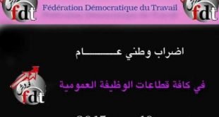 إن النقابات الوطنية والديمقراطية الأعضاء في الفيدرالية الديمقراطية للشغل وتجاوبا مع قرار المكتب المركزي ليوم 02 دجنبر 2015 ، توجه نداء إلى كل موظفي الوظيفة العمومية والجماعات المحلية للانخراط القوي في الإضراب العام الوطني بالوظيفة العمومية المقرر تنفيذه يوم 10 دجنبر 2015 ، لمواجهة السياسة الحكومية المعادية لمأجوري القطاع العام …