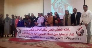 توصل الموقع ببيان مشترك للمكتبين المحليين لسيدي بوعثمان للنقابة الوطنية للتعليم (ف د ش) والجامعة الحرة للتعليم (إ ع ش م) هذا نصه : عقد المكتبان النقابيان المحليان لسيدي بوعثمان لكل من الجامعة الحرة للتعليم المنضوية تحت لواء الاتحاد العام للشغالين بالمغرب ، والنقابة الوطنية للتعليم العضو في …