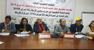 نص التصريح الصحفي الذي قدمته النقابات التعليمية الثلاث خلال الندوة الصحفية التي عقدتها يوم الثلاثاء 12 فبراير 2019 بالرباط و جددت من خلالها دعوتها للانخراط في اضراب 20 فبراير والمشاركة في مسيرة الاربعاء 20 فبراير 2019 الممركزة بالرباط